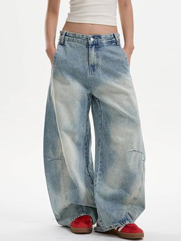 • EMMIOL American-Style Washed Distressed Finish Baggy Jeans