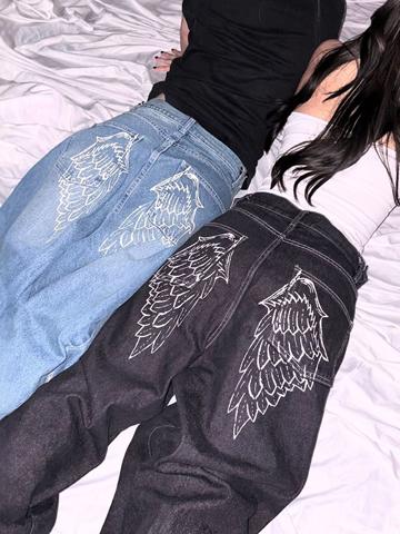 Angel Wing Print Boyfriend Jeans