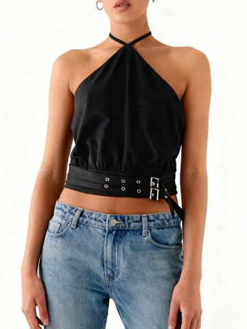 • EMMIOL Backless metallic embellishment Halter Vest