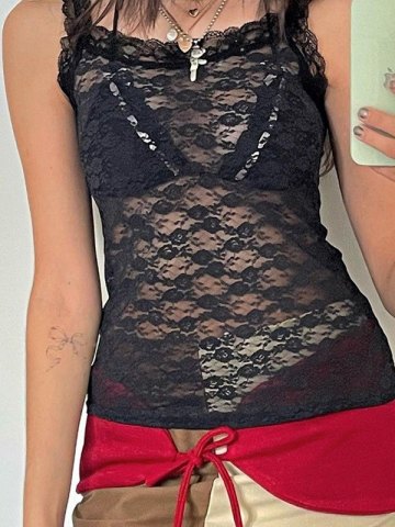 • EMMIOL Black Floral Sheer Lace Tank Top
