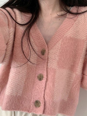 • EMMIOL Checkered Button Front Cropped Cardigan