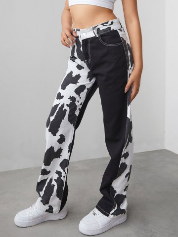 Contrast Cow Print Boyfriend Jeans