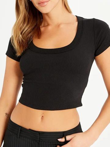 • EMMIOL Crew Neck Cotton Rib Short Sleeve