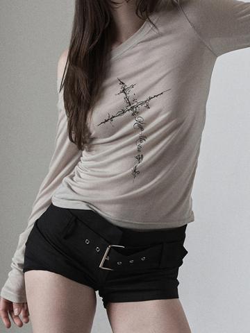 Cross Print Shoulder Bag Oversized Long Sleeve