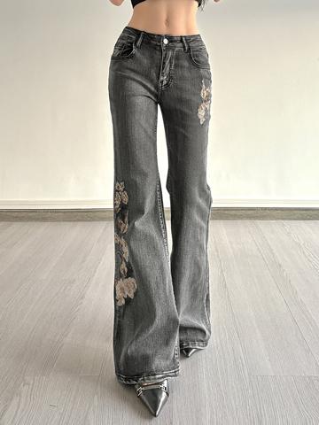 • EMMIOL Designer Sequins Embroidery Flare Jeans