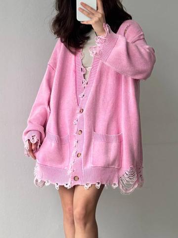 • EMMIOL Dopamine-Damaged Knitwear Cardigan