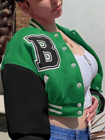 Description: These y2k meet preppy vibe jackets are perfect for trans-seasonal outfits. Cuts to a flattering silhouette, features dropped pu leather panel long sleeves design, with contrast letter embroidered, striped pattern detail and button fasten to the front.