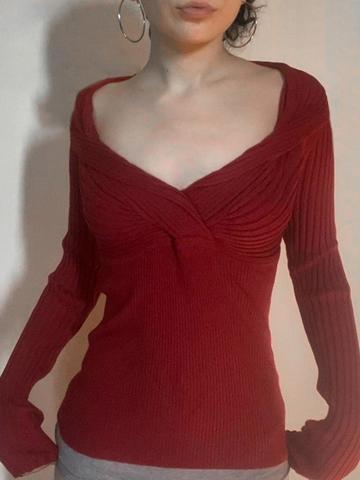 • EMMIOL Fashionable Cross V-Neck Long Sleeve