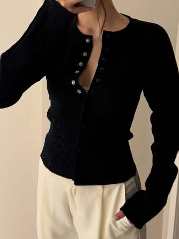 • EMMIOL Hidden-Button Crewneck Sweater
