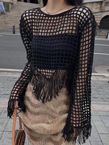 Hollow Out Fringed Crochet Knit Crop Top