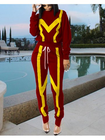 Hoodie Lace-Up Colorblock Two-Piece Outfit
