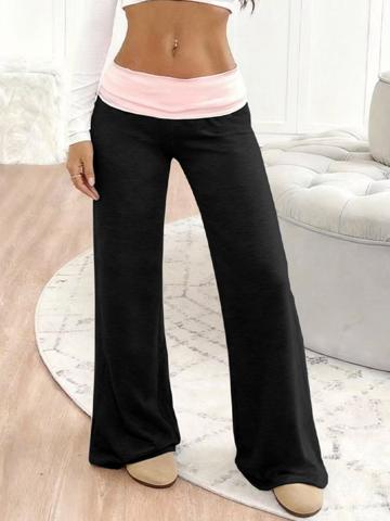 Low-Rise Color-Blocked Casual Straight Leg Pants