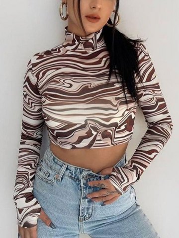 • EMMIOL Marble Print Long Sleeve Crop Top