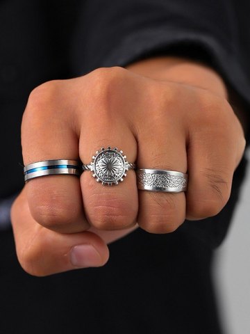 Men's 3pcs Sun Pattern Ring Set