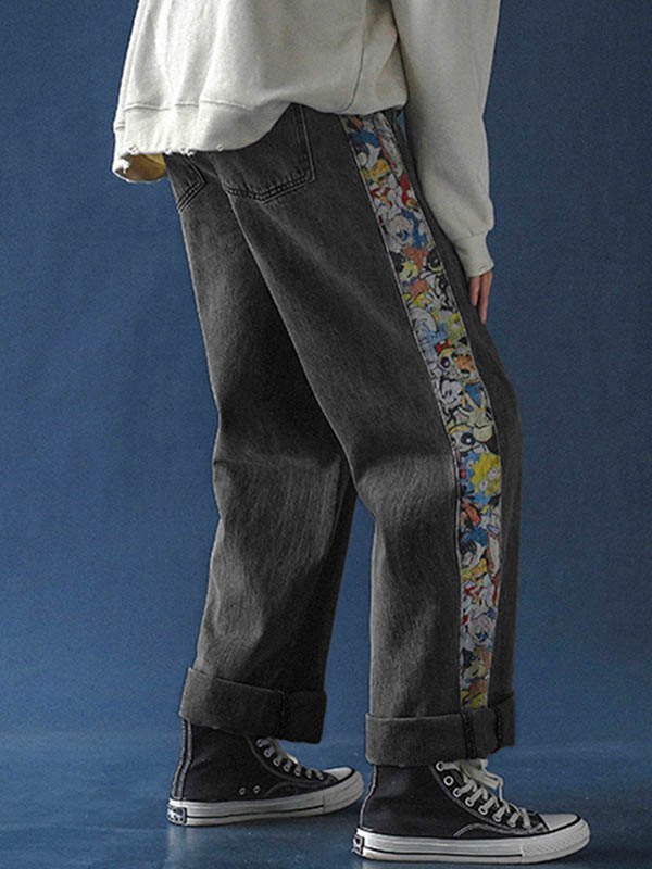 Men's Patchwork Printed Skate Jeans