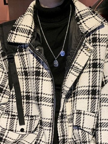 Description: This retro-inspired jacket featured checker pattern print, it has front pockets, dropped long sleeves and button fasten design.