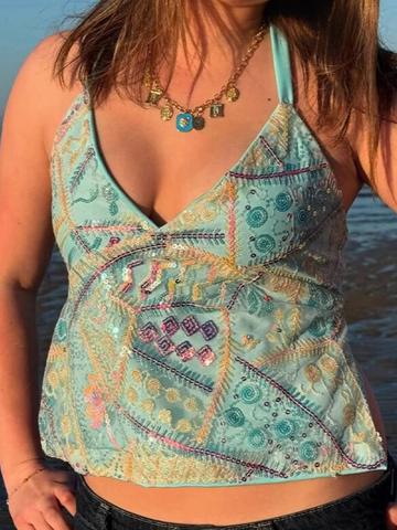Retro Sequins In Contrasting Colours Halter Vest
