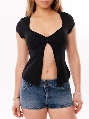 • EMMIOL Solid-Color Knotted Short Sleeve