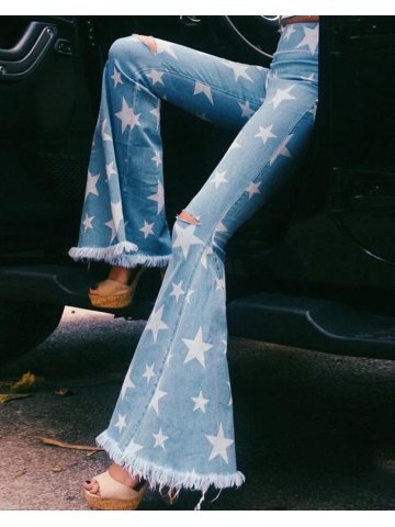Star Print Ripped Flared Jeans