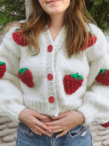 Design: Front Button Fastening, Strawberry Detail At Front & Back, Drop Shoulder Design