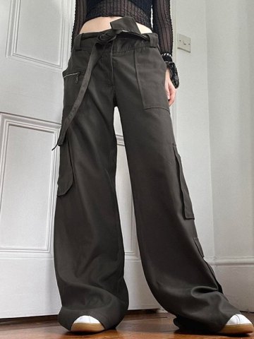 Tie Belt Straight Leg Cargo Pants