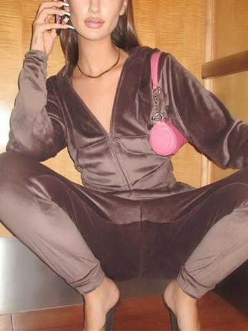 • EMMIOL Velvet Long Sleeve Hooded Tracksuit Set