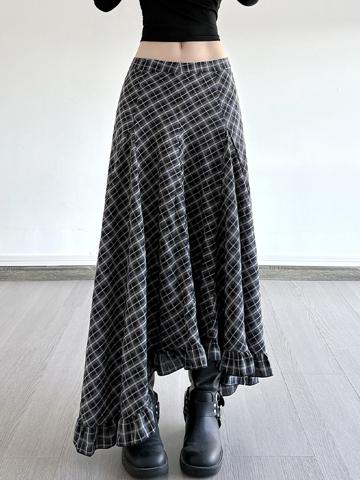 • EMMIOL Vintage Check Irregular Maxi Skirt