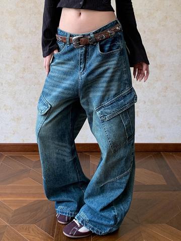 • EMMIOL Wash-Faded Large Pocket Cargo Jeans