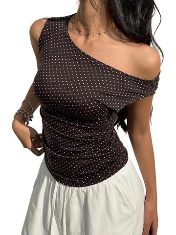 Women's Off Shoulder Sleeveless Polka Dot Tank Top